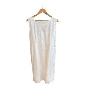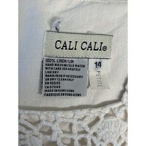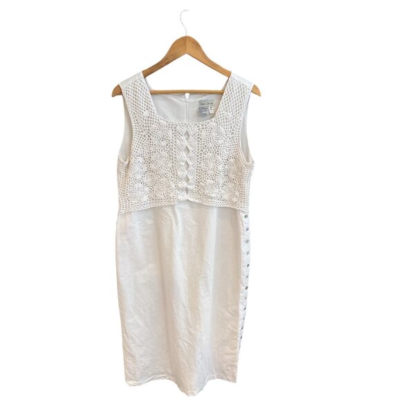 White Crochet Top Linen Midi Dress By Cali Cali Petite Size 14 With Side Button