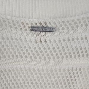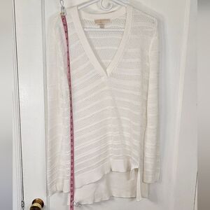 Michael Kors white v-neck crochet see-through sweater. It is a bit longer in the back than the front side & has bottom side slits. Great condition, no flaws!