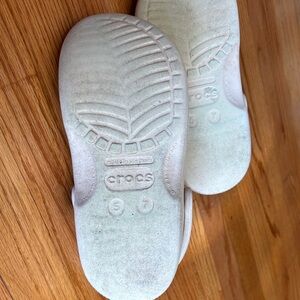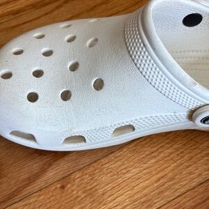 Comfortable and durable crocs in classic white. Perfect for everyday wear. Adult size men 5; women 7
