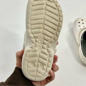 White Crocs Kid Youth Grey Fleece Lined Unisex Slip on Shoes size 2
