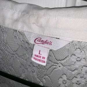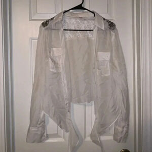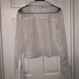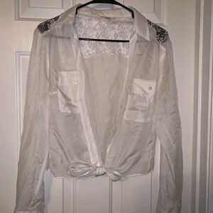 Long sleeve white lace crop top. Button down blouse that can be tied up. Size large. Bin # 3 For my inventory purposes only