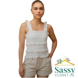 White Crop Top – CRAVE FAME Smocked Tank, XS, Excellent