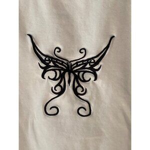 White Crop Top T Tee Shirt Black Embroidered Butterfly Women M UNBRANDED