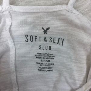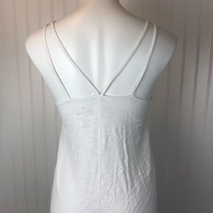 White tank top with lace up / crossed strings design in the front and back, part of soft & sexy design