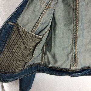White Crow Distressed Denim Jean Jacket Wash Fade Stars Stripes Womens Size Medium