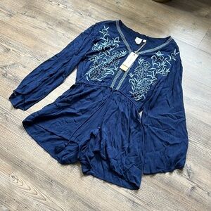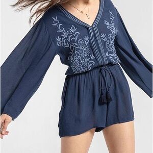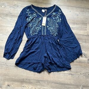 White Crow Flora Crinkle Romper NWT size M Embroidered Festival Boho Beach Light
