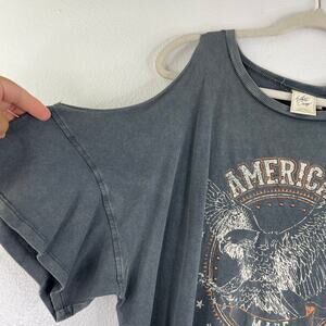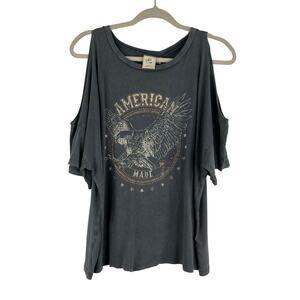 White Crow Gray Distressed Cold Shoulder t-shirt "American Made" 100% Cotton Lg