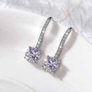 🎀 White Crystal CZ Dangle Earrings for Women Imitate Zircon Drop, HA4516