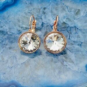 Gorgeous white Austrian crystal in a rose gold setting. Leverback closure.