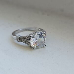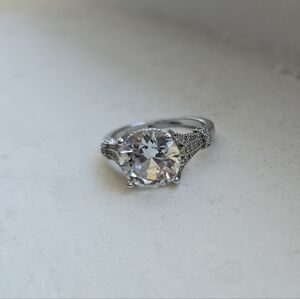 5 cts Round Cubic Zirconia center Sterling Silver Ring. The ring band has small CZ stones as accents. Belle Luce design from Jtv. Stunning. Size 7.