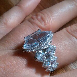 This beautiful ring features the gemstone white cubic zirconia in a multi-stone design. The ring is set in rhodium over 925 sterling silver and is size 8. 10.41 ctw. Brand new.