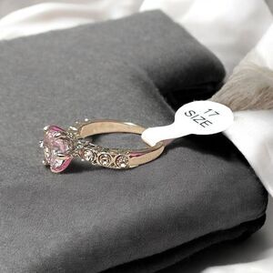 Elegant silver tone ring with a white cubic zirconia centerpiece and accents. Perfect for adding sparkle to any outfit.