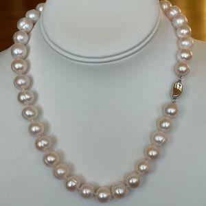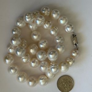 I made this strand using 38 white cultured freshwater pearls that measure over 10.6mm.