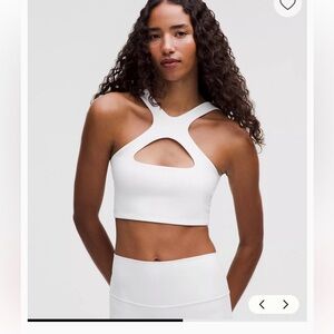Stylish white halter crop top with cutout design. Perfect for casual wear.