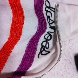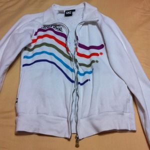 Super comfy white DC jacket with multi-color wiggles on it! Super fun, super playful!