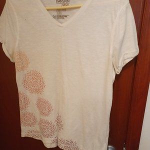 White, Danskin Now, T-shirt, with pink, orange, and purple flowers. Size XL