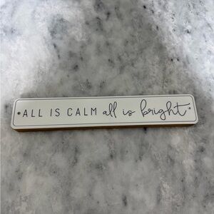 Elegant white sign with 'All is Calm, All is Bright' in script. Perfect for home decor. Purchased from Hobby Lobby last season. In new condition!