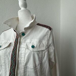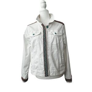 White Denim Jacket Custom Floral Design Painted Back SZ L
