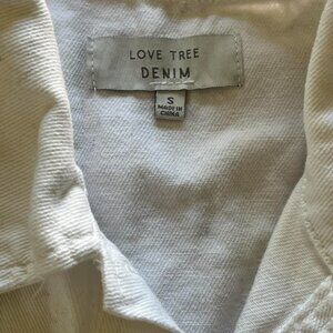 White denim Love Tree button-up blazer top, 100% cotton denim shirt with 2 chest pockets and large buttons #denimshirt