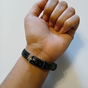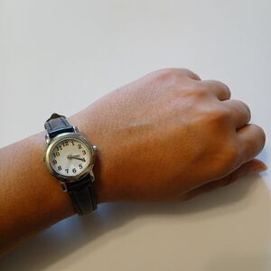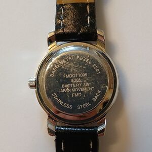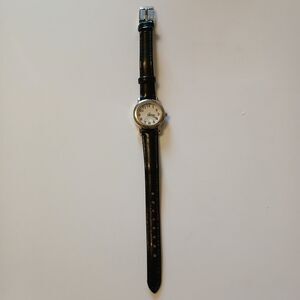 Needs a new battery. The wrist size is 5 3/4-7 1/2 inches. There are scratches on the crystal, case, and band. It's a casual preppy style. Please view the photos. Thank you!