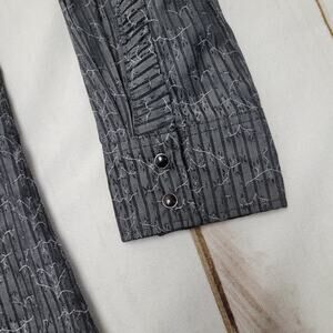 Stylish "White Diamonds Boots" pearl snap button down! Black striped with a almost faux suede detailing on the shoulders. Gently worn and in excellent condition. Size medium/38
