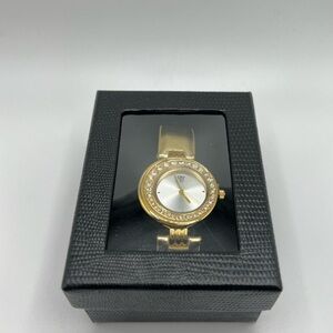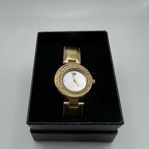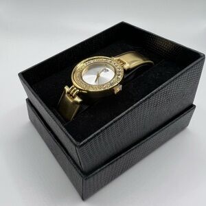 Elizabeth Taylor White Diamonds watch has gold, faux leather band and rhinestone face. New in box! China movement