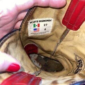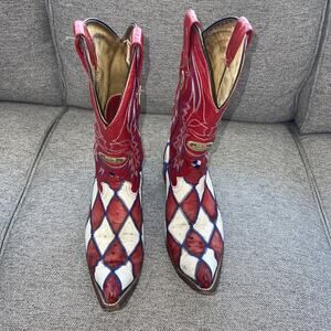 White Diamonds Men 8 Cowboy Boot Ostrich Pointed USA Red White Blue Argyle Joker