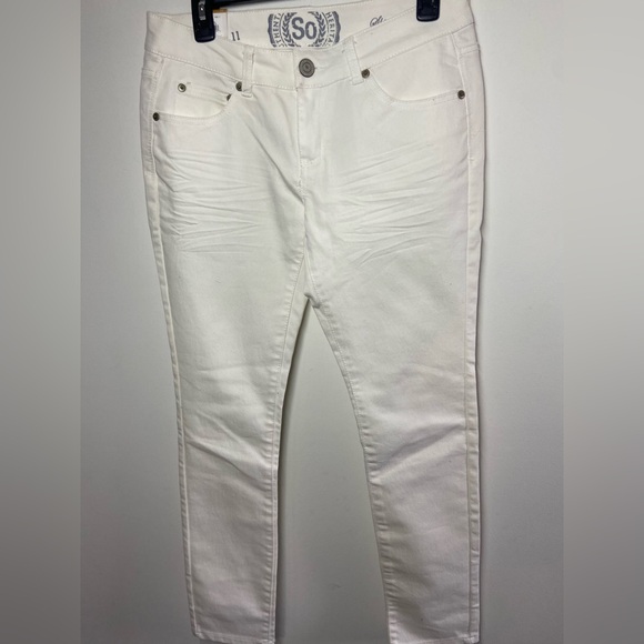 Stylish white jeans with a distressed design. Perfect for casual wear.