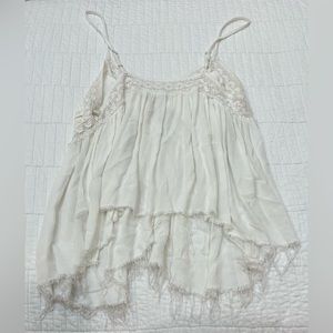 White Distressed Lace Flowy Tank Top