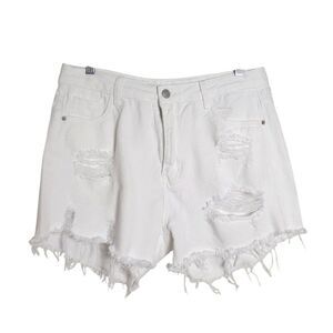 Elevate your summer wardrobe with these trendy white distressed shorts. Crafted from breathable cotton, their frayed hem and high-waisted fit add effortless style.