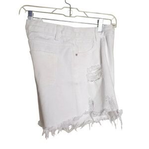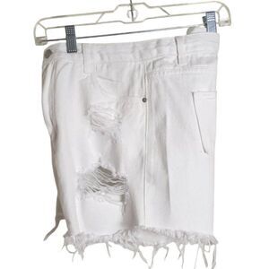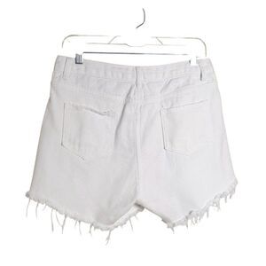 White Distressed High-Rise Denim Shorts L Frayed Hem Casual Cotton Summerwear