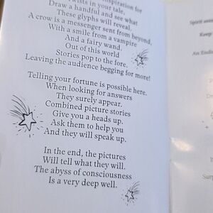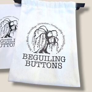 white divination button set with printed symbols. Includes a branded storage pouch for easy organization. Lightweight and portable for intuitive storytelling and fortune-telling use.