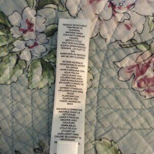 Care Label: Machine wash cold with similar colors, gentle cycle, only non-chlorine bleach when needed, reshape lay flat to dry [that means do not use a dryer, I think], warm iron as needed, may be dry cleaned.