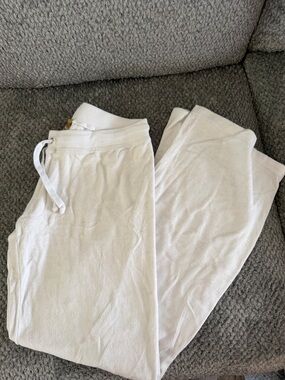 Juicy couture. Soft white drawstring lounge pants. Lightweight and cozy fabric. Elastic waist with functional drawstring. Versatile casual staple.