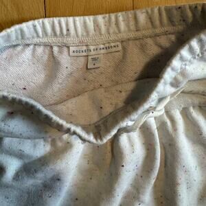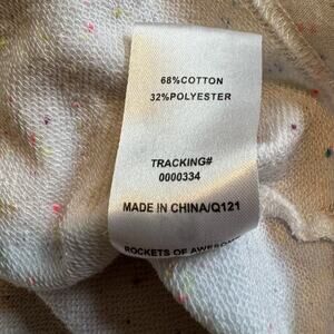 White functional drawstring sweatskirt by rockets of awesome. Neon rainbow flecks throughout. Worn just a few times. No stains but some pilling and washwear due to the nature of the fabric. Super cute. Could be worn at 3T as well because of the drawstring.