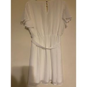 White Knee Length dress. Chiffon material. Open cap sleeves. Size Large. Brand New.
