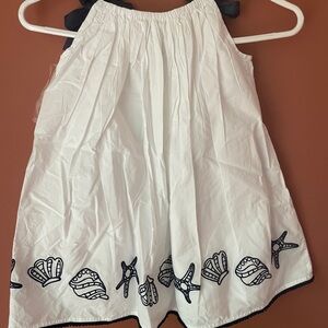 Charming white dress featuring a navy blue sea shell pattern. Perfect for a beach outing or any summer outing. NWT 3T