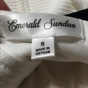White Emerald Sundae dress ribbed horizontally off the shoulder dress with straps; built in bra; perfect for a Spring event, graduation, or any occasion!