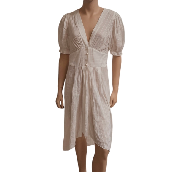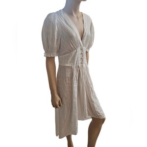 GUC - Pair this duster with a pair of jeans for a laid-back look. This short sleeve duster has a four button closure at the bodice. The left sleeve has some small spots. Please see photos for reference
