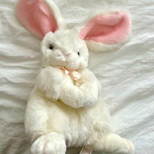 This charming vintage stuffed animal is perfect for Easter or any time of year. Measuring small at 6-14 inches, it's recommended for ages 3 and up.The plush toy is unbranded and in great shape, with no stains or unpleasant odors. Don't miss out on the chance to bring home this adorable Easter Bunny! It is super cute!