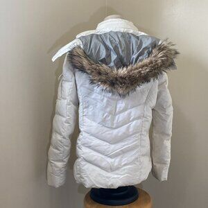 White "Eddie Bauer" Down jacket, removable hood with faux fur trim
