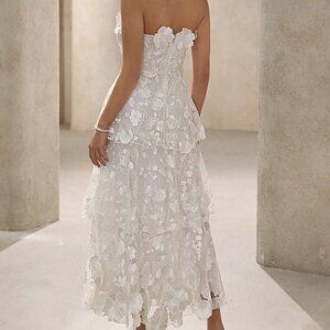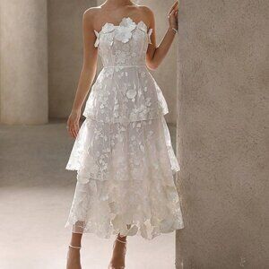 White Elegant Women's 3d Floral Decor Strapless Party Dress