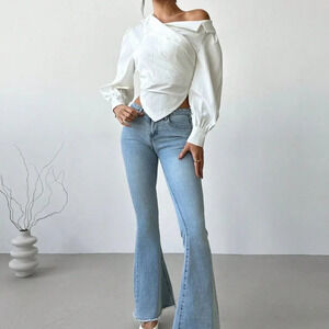 White Elegant Women's Asymmetrical Hem Long Sleeve top blouse