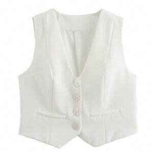 White Elegant Women's European And American Style Casual Slim Fit Sleeveless Tan
