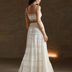 White Elegant Womens European Lace Two-Piece Set