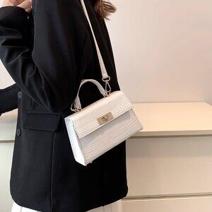 White Elegant Women's Mini Crocodile Embossed Flap Square Handbag
