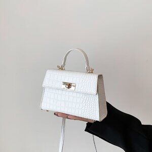 White Elegant Women's Mini Crocodile Embossed Flap Square Handbag