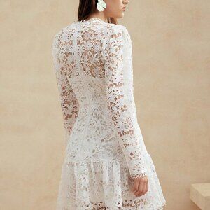 White Elegant Women's Pure Floral Lace Long Sleeve Dress