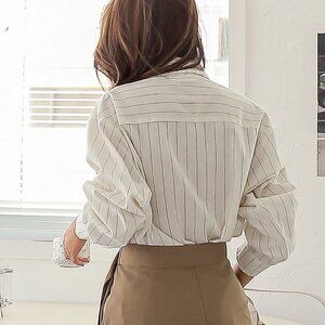 White Elegant Women's Striped Print Drop Shoulder Shirt