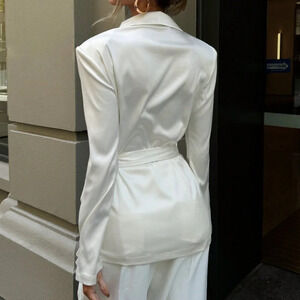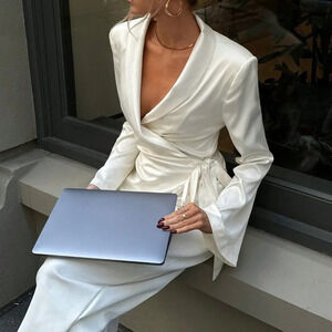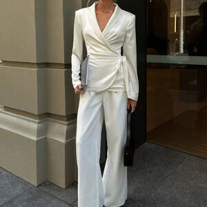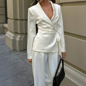 White Elegant Women's Turndown Collar Cross Wrap Side Bow Tie Blouse